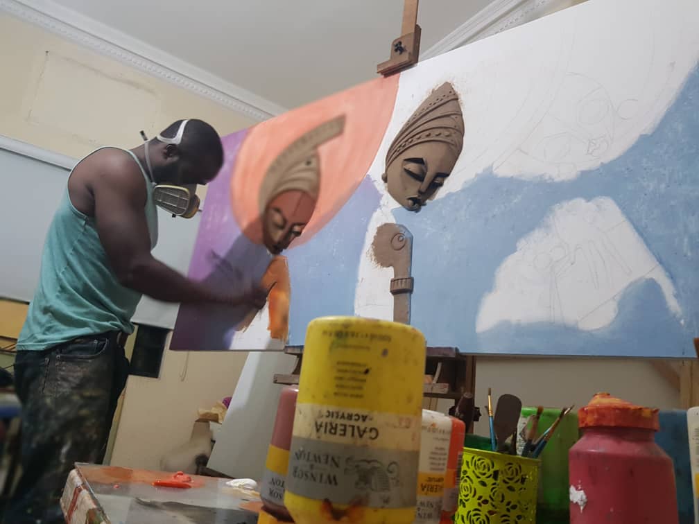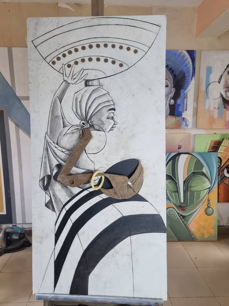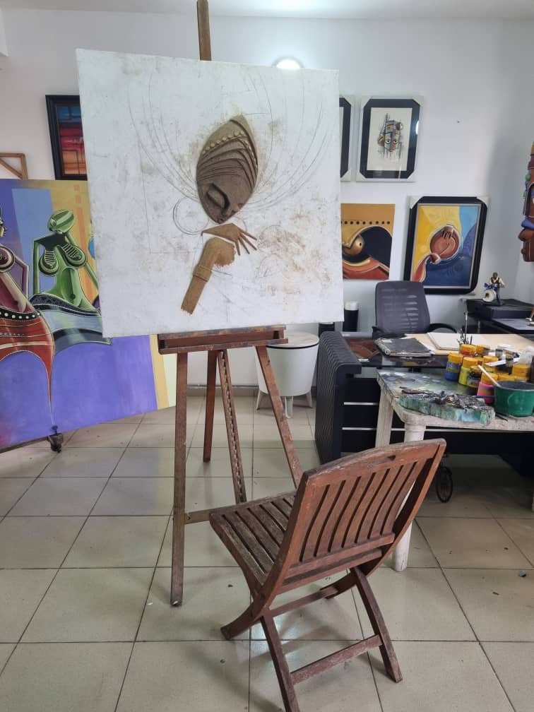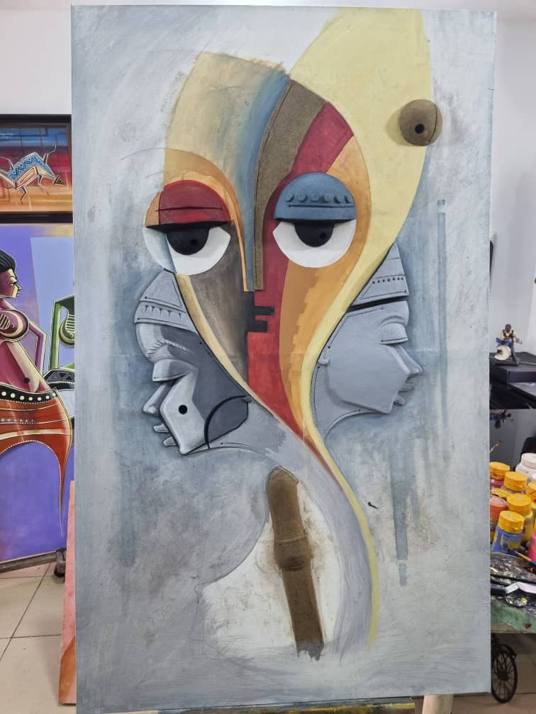 Tony Okoye is a Nigerian visual artist whose work reimagines the possibilities of the canvas. As a 3-dimensional mixed media artist, Tony moves beyond traditional painting, sculpting his surfaces before ever picking up a brush.